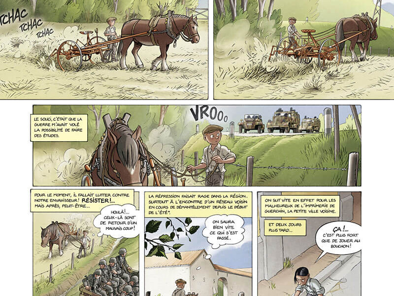 Nous sommes en plein été 1943, période où les moissons occupent les agriculteurs à temps plein. François, le jeune narrateur, ainsi qu'Eusèbe et Lisa, ses amis, continuent leurs initiatives, souvent dangereuses, pour combattre à leur manière les occupants. Outre l'importance de la presse clandestine, le rôle de la milice française et des réseaux de résistants étrangers dans le maquis sont aussi deux autres points développés dans la trame de ce nouveau tome. Tous les coups sont permis dans les deux camps, nous suivons l'avancée des alliés, la découverte macabre des camps de concentration et déjà cette envie viscérale de transmettre pour ne pas oublier.