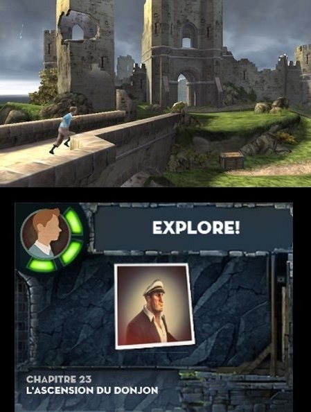 Si Le Secret de la Licorne est à l'origine le nom d'un album de Tintin, le long métrage s'en éloigne sur bien des points, et introduit une pincée d'éléments extraits du Crabe aux Pinces d'Or afin d'assister à la rencontre du jeune reporter avec le Capitaine Haddock. Sur Nintendo 3DS, le jeu se présente comme un jeu de plate-formes essentiellement en vue de profil. Pour varié un peu les tâches, on retrouvera des séquences d'exploration, de tir, du pilotage d'avion, et bien sur des énigmes rappelant les jeux d'aventure "pointer-cliquer" très présents sur PC. Parfaitement adapté aux débutants, Tintin se parcourt sans déplaisir, mais rencontre rapidement un terrible écueil : sa durée de vie. Il suffit d'à peine trois heures pour finir le scénario principal. Heureusement, un mode annexe répond présent, intitulé Tintin & Haddock, où les développeurs ont semble t-il eut davantage de libertés. L'intrigue évolue alors dans les pensées d'un Capitaine qui n'est clairement pas à jeun. Jouable seul ou à deux, ce mode permet non seulement d'incarner Tintin et Haddock, mais aussi l'inénarrable Bianca Castafiore ! Mais point de défis annexes sur 3DS. Les passages de plate-forme dans Tintin : Le Secret de la Licorne sont assez balisés, et ne présentent que peu de challenge, les ennemis étant facilement arrêtables avec quelques objets bien visés. Les séquences en véhicules (terrestre, aérien ou sous-marin) vous demanderont essentiellement d'éviter les pièges présents, tandis que Milou sera parfois jouable afin d'aider Tintin à débloquer un passage ou retrouver un suspect. Une réalisation à la hauteur ?La direction artistique est très respectueuse de la bande dessinée, mais la réalisation technique trahit quelques faiblesses, notamment dans ses cinématiques particulièrement en retrait. Le graphisme opte pour un aspect cartoon très correct, et les animations des personnages sont très souples. Les environnements sont plutôt variés, même si les textures manquent souvent de détails. La jouabilité demeure toujours très accessible quelque soit l'option de jeu choisie. A contrario les quelques mini-jeux exploitant le tactile ne jouissent pas d'un grand intérêt. Le titre est d'ailleurs sans doute trop basique pour séduire le public familial, ou les fans de Tintin les plus âgés. Inspirées du film, les musiques contribuent à poser l'univers onirique du jeu. Mais cette édition 3DS ne comporte aucun doublage, ce qui plombe quelque peu l'ambiance. La durée de vie globale atteint péniblement les six heures de jeux, ce qui demeure insuffisant, surtout que la quasi-totalité des bonus présents sur consoles de salon, ont ici mystérieusement disparu. VERDICT-Déjà très perfectible sur consoles de salon, le jeu Tintin a encore été allégé pour son passage sur Nintendo 3DS. Un titre sympathique à découvrir, bien que répétitif, mais indéniablement trop court. |