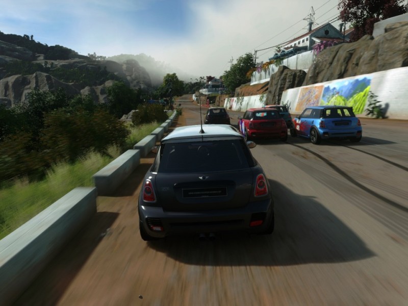 Développé par Evolution Studios (MotorStorm), DRIVECLUB se présente comme un jeu de course mi-arcade mi-simulation nous permettant de concourir sur 55 pistes et au volant d'une des cinquante voitures les plus rapides du monde. A peine la partie débute t-elle que l'on découvre un premier écueil, le manque d'inertie des voitures. Les bolides glissent beaucoup, pas autant que Ridge Racer en son temps, mais on aura de cesse d'entendre crisser les freins tout au long de la partie, sans compter que vous pourrez court-cuiter allégrement dans l'herbe (ou dans la terre) sans que cela ne nuise au comportement de la voiture. Pour vous éloigner des sorties de piste, les développeurs ont ajouté des murs invisibles à la corde, et des pénalités de puissance si vous coupez un peu trop large. La gestion des collisions tient du pur jeu d'arcade et l'intelligence artificielle affiche des voitures qui se tiennent en file indienne, comme à l'ancienne. Parfois, il est même plus pratique de freiner en tapant un adversaire ou en percutant un mur que de freiner, car il n'y a pas de dégâts mécaniques dans DRIVECLUB. Autant vous dire qu'en multijoueurs, le titre tourne vite au pugilat, sans compter que l'IA n'hésite pas elle non plus à vous percuter, ce qui a pour conséquence de vous perdre des points d'expérience.