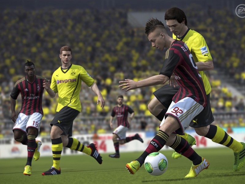 ![]() Plate-forme : PlayStation 3 - Xbox 360 - PlayStation Portable - PC - Wii - Nintendo 3DS - PlayStation Vita - PlayStation 4 - Xbox One Date de sortie : 26 Septembre 2013 Editeur : Développeur : Genre : Sport Multijoueur : Oui Jouable via Internet : Oui Test par Nic0078.5/10 FIFA accueille son édition annuelle sur consoles. Une progression constante.Pour cette cuvée 2013, on ne sera pas surpris que FIFA 14 reprenne les très bonnes bases de son prédécesseur, et affiche uniquement une action un peu plus lente que dans son ainé. Les évolutions se sont faites en douceur, avec des déplacements un peu plus lourd des joueurs, et des frappes de la tête plus constructives. Cependant la physique des frappes a considérablement évolué, et un mauvais contrôle peut ralentir fortement une course. En cas de contact avec le défenseur, une pression sur la gâchette L2 permet à l'attaquant de le repousser. En revanche, le jeu aérien semble moins aboutie que dans FIFA 13. Le mode Jeux Techniques permettra une fois encore de découvrir toutes les nouveautés en étant pris par la main à travers des modules particulièrement exhaustifs (heureusement d'ailleurs, les contrôles manuels demandant un peu d'entraînement avant d'être maîtrisé). Le système de défense à distance répond une fois encore présent, et lorsque cette action est activée, votre joueur suit ainsi son adversaire direct comme son ombre. Autre élément notable, les menus ont beaucoup évolué, présentant désormais un affichage en tuiles rappelant fortement Windows 8, et la navigation s'avère facilitée. Un seul nouveau mode est présent, la Saison Coop. Comme son nom le suggère, il permet de faire une compagne en coopération. Le mode Carrière affiche désormais un système de recrutement plus poussé, faisant la part belle au managérial, et permettant de fixer des critères dans la recherche d'un joueur. Le mode Ultimate Team évolue aussi et se pare de nouvelles divisions, d'un système de recherche plus exhaustif, mais aussi de la possibilité de modifier les numéros de maillot des joueurs. Côté contenu, on dénombre évidemment toujours la base de données des joueurs impressionnante, avec les formations nationales, les équipes italiennes, espagnoles, française, brésiliennes, anglaises, etc. On notera toutefois l'introduction des championnats argentins, chiliens, et colombiens cette année, mais ils manquent toujours un nombre important de sélections nationales. Les modes de jeux comprennent toujours les matches amicaux, la carrière, les saisons en Club, les ligues et les compétitions, ou encore moult défis. Il est de bon ton d'ajouter que tout cela est classique, tout simplement parce que ces modes sont pour la plupart présents dans les anciens jeux FIFA. Quant à la compatibilité avec le PlayStation Move, elle n'apporte hélas pas grand chose au jeu. Une réalisation à la hauteur.