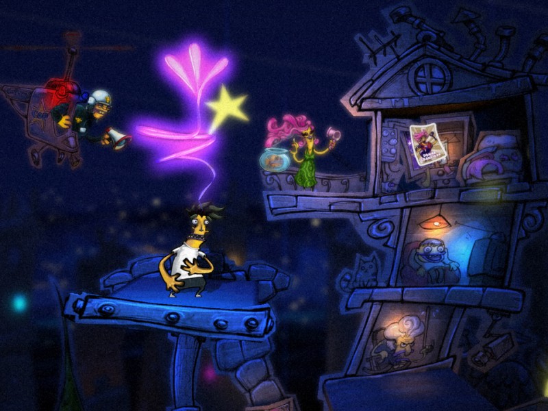 Editeur : Développeur : Genre : Action/Aventure Multijoueur : Non Jouable via Internet : Non Test par Nic0078/10 Stick It to the Man ! accueille une adaptation sur Xbox One. Développé par Zoink Games, Stick It to The Man ! vous permet de diriger Ray Wood, un personnage qui a été frappé à la tête par un mystérieux objet. A son réveil à l'hôpital, il découvre qu'un bras spaghetti rose est fixé à son cerveau ! Hasard ou coïncidence, il peut désormais lire dans les pensées. Et c'est peut-être sa seule issue, car il se retrouve piégé : Accusé du meurtre de sa petite amie, entouré de brutes inquiétantes et de toute évidence poursuivi par "The Man". Ray, qui vit dans un monde fait de papier et d'autocollants, est capable de plier et de déchirer les structures qui l'entourent, et son bras spaghetti est bien pratique lorsqu'il lui faut s'accrocher à des plateformes ou se balancer en se servant de punaises. Il peut aussi décoller les autocollants environnants et les fixer ensuite sur des objets ou des personnes pour résoudre des énigmes. Si un homme de main patibulaire vous bloque le passage, par exemple, collez-lui sur la trogne une tête de chien sympathique pour améliorer son humeur afin qu'il vous laisse passer ! Grâce à ses nouveaux pouvoirs télépathiques, Ray peut découvrir les motivations d'autres personnes. Avec la manette Xbox One, il est possible de passer en mode lecture d'esprit. Il suffit de chercher des personnages puis faire un zoom sur leur cerveau pour savoir ce qu'ils pensent, ou allez directement fouiller l'intérieur de leur crâne ! Vous pourrez aussi vous servir d'une carte bien utile, mais en revanche, aucune compatibilité Kinect n'est présente. Dans les faits, le jeu se compose de passages de plates-formes 2D, où vous devrez vous servir des pouvoirs de votre bras cérébral pour avancer sans problème. La progression s'avère assez délirante, aussi inutile d'y chercher une quelconque logique. La durée de vie apparaît dans l'ensemble correcte pour un titre téléchargeable. Comptez environ quatre heures pour terminer l'aventure, et même si la rejouabilité est très limitée, on s'y amuse beaucoup. La réalisation technique s'en sort avec les honneurs, avec un parti pris artistique très élaboré, et des personnages en papier découpé qui ne manque pas de charme. L'ambiance sonore est excellente, le jeu est plein d'humour (textes écrans en français, doublage en anglais) et la prise en main s'avère sans faille. VERDICT-Stick It to the Man est une production atypique. Bourré d'humour, ce jeu d'action/aventure délivre un univers surprenant et loufoque, ainsi qu'une réalisation technique et sonore très stylisée. |