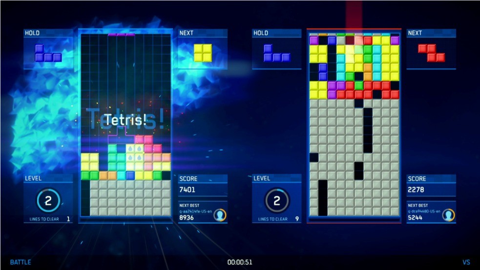![]() Plate-forme : Xbox One - Nintendo 3DS - PlayStation Vita Date de sortie : 18 Décembre 2014 Editeur : Développeur : Genre : Réflexion Multijoueur : Oui Jouable via Internet : Oui Test par Nic0077/10 Tetris accueille une nouvelle adaptation sur Xbox One, cette fois sous l'égide d'Ubisoft Montréal. Un épisode complet.Encore un épisode de Tetris ? Certes, ce classique du jeu de réflexion russe a été maintes fois adapté sur consoles, mais ce volet console apporte des nouveautés au niveau des options de jeux. Le concept popularisé par la version Game Boy (sorti en 1989 déjà), vous propose d'emboiter des blocs (les fameux tetraminos) qui tombent un par un à l'écran, afin de créer des lignes. En faisant disparaître quatre lignes simultanément, vous créerez un Tetris. Mais ce n'est pas tout : Cette édition intègre une dizaine de modes différents. Le mode Marathon vous demandera d'atteindre le niveau 15, le Duel offre la possibilité d'affronter la console ou des joueurs en versus, la déclinaison Ultime nécessite d'être la dernière personne à jouer en utilisant les bonus (parmi eux l'attaque "Manège enchanté" pour changer ses adversaires de place, la manœuvre "Il pleut bergère" pour leur lancer des briques supplémentaires ou encore la "Scie Circulaire" qui vous aidera à nettoyer plusieurs lignes simultanément), l'Infini vous demande de tenir le plus longtemps, l'Ultra requiert de récolter le plus de points possible dans un défi de trois minutes contre la montre, le Sprint impose d'éliminer 40 lignes aussi vite que possible, tandis que le mode Challenge comporte quatre variantes. Avec le Master, les Tetriminos tombent rapidement et apparaissent directement au bas de l'écran., dans Rotation, l'orientation des blocs est aléatoire et il n'est pas possible de les faire tourner. Escalade requiert d'éliminer de plus en plus de lignes, tandis que dans Invisible, les Tetriminos deviennent invisibles en atteignant le bas de l’écran. Tetris vous offre également une série d’options multijoueurs, puisqu'il est possible de jouer à 4 sur un même écran et jusqu'à 8 en ligne. Sur le plan technique, l'univers demeure assez basique, et si le design global est assez sympathique, les arrières-plans se montrent très répétitifs. Les musiques reprennent les thèmes des anciens opus, mais remixés. Si les thèmes sont assez réussis, là encore ils deviennent rapidement redondants, faute à un choix trop restreint de chansons. Quoiqu'il en soit, le jeu est assez complet, et commercialisé à seulement 9,99€, ce qui demeure un investissement sur. VERDICT-Une édition plutôt sympathique de Tetris. Le titre demeure toujours aussi amusant, et les nombreuses déclinaisons proposées permettent de rester devant sa console pendant de longues parties. |