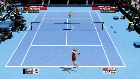 ![]() Plate-forme : PlayStation Portable - Xbox 360 - PC - PlayStation 3 Date de sortie : 30 Mars 2007 Editeur : Développeur : Genre : Sport Multijoueur : Oui Jouable via Internet : Non Test par Nic0078/10 Virtua Tennis 3 connait également une adaptation sur PSP. Un retour gagnant.Après les consoles de salon, c'est maintenant à la PSP d'hériter du jeu Virtua Tennis. Ce portage a été conçu par Sumo Digital, spécialiste des conversions il est vrai, et supervisé par l'équipe d'origine AM3. VT reste une référence dans le tennis en apportant une approche arcade du sport et utilise toute la panoplie de coups possibles dans ce sport. VT3 propose de plus un très bon mode carrière et scénarisé, où vous devrez créer votre joueur et participer à des tournois mais également à des mini-jeux afin d'améliorer vos compétences. Un long parcours vous attend donc, puisque vous débutez à la 300ème place mondiale ! Au fil de la progression, vous débloquerez des bonus et accèder à des nouvelles options et défis. Mais attention à surveiller votre endurance. Une fois la barre vide, il faudra se reposer, soit dans sa maison durant une semaine, soit au soleil mais pendant trois semaines, ou alors en prenant une boisson énergisante mais qui peut alterer votre condition physique. Il faudra savoir gérer son calendrier pour ne pas rater les évènements primordiaux. La présence de quelques licences officielles permet de retrouver pas mal de joueurs et joueuses existants : Andy Roddick, Roger Federer, Tommy Haas, James Blake, Lleyton Hewitt, Tim Henman, Venus Williams, Maria Sharapova, Lindsay Davenport, Daniela Hantuchova, Rafael Nadal, Amelie Mauresmo, David Nalbandian, Martina Hingis, Nicole Vaidisova, Taylor Dent, Gaël Monfils, Juan Carlos Ferrero, Mario Ancic et Sébastien Grosjean. Techniquement au top ?Prenant comme base un jeu pour console nouvelle génération, cette version PSP de Virtua Tennis 3 propose un jeu agréable graphiquement parlant, avec de jolies couleurs, des environnements vivants et des participants agréablement modélisés. Les animations des joueurs sont quant à elles, plutôt coulées et fluides. Pour le reste la jouabilité demeure un modèle et le gameplay de qualité permet de réaliser toutes sortes de mouvements (slices, amortis, lobs, revers, coups droits, etc ...) . Coté son, on retrouve des musiques forts discrètes, des bruitages assez honnetes et une ambiance généralement à la hauteur. A noter que si le jeu est intégralement localisé en Français, les arbitres annoncent les scores suivant la langue locale. Outre le mode principal, Virtua Tennis 3 propose les options Tournoi, Match, Exhibition, Parties sur court, et le Multijoueur. Dans ce dernier, vous pourrez vous affronter jusqu'à quatre en réseau local (en simple ou en double donc, mixtes ou non), soit dans des matchs, soit dans les mini-jeux. Au petit jeu des différences, sachez que comparé à la version salon, ce titre PSP n'embarque qu'une seule vue, que le titre est globalement plus facile, que les joueurs plongent moins, et qu'il n'est pas possible de modifier en profondeur le visage de votre avatar. VERDICT- Virtua Tennis 3 comblera les amateurs de tennis qui retrouveront un très bon jeu sur leur PSP. Très complet, et pour le moins varié, il s'impose comme une référence. |