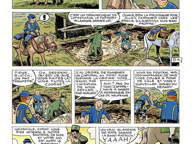 Virginie le 17 mars 1862, jour de la Saint Patrick, jour férié pour les Irlandais et donc pour les membres de la Brigade irlandaise, soldats nordistes d'ascendance irlandaise. Pendant qu'ils font la fête, le sergent Chesterfield poursuit à nouveau le caporal Blutch qui a déserté. Un soldat de la Brigade irlandaise reconnaît un cousin en la personne de Chesterfield. Avec ses cheveux roux et son caractère débraillé, il peut passer pour un Irlandais que l'on appelle "Corny".
