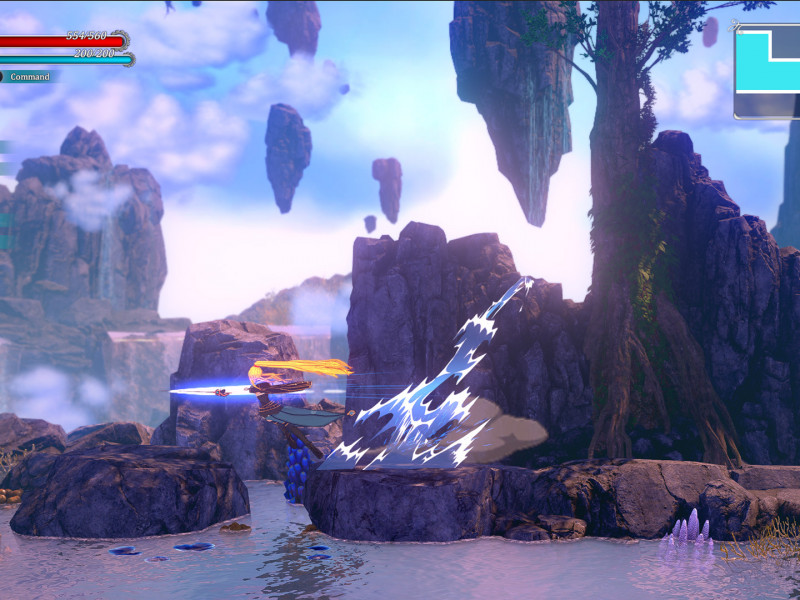 Frontier Hunter : Erza's Wheel of Fortune est une aventure de style anime metroidvania proposée par IceSitruuna et c'est le deuxième chapitre de Tower Hunter : Erza's Trial. Le jeu commence par la présentation du protagoniste lors d'une session de streaming sur un dirigeable bordant les frontières de l'empire. Le voyage de notre héroïne, jusqu'alors placide et paisible, subit un changement de cap radical lorsque de dangereuses créatures décident d'attaquer le navire et de s'y introduire. Les dégâts causés par les envahisseurs font dévier le dirigeable et l'amènent jusqu'à la frontière, celle-ci défendue par une colossale tempête de débris. Après un atterrissage forcé dans une frontière inexplorée, notre protagoniste Erza et l'équipage du dirigeable se retrouvent obligés d'explorer le site du crash à la recherche de ressources utiles pour restaurer les systèmes du navire. Erza ne sera pas seule lors de ses recherches : dans un premier temps, nous retrouverons Chiara, un autre membre de l'équipage, qui l'accompagnera, et plus tard ce couple sera rejoint par Nia. Malheureusement, les traductions proposées par le jeu ne sont pas parmi les meilleures , et les noms et certaines phrases présentes dans les dialogues changent continuellement, déroutant le joueur dans la plupart des cas. Le trio d'héroïnes représente une des pierres angulaires du gameplay de Frontier Hunter, grâce au système d'échange et d'appel des personnages lors des combos. Chacun des protagonistes exalte un style de combat différent : Erza est une experte dans l'art de gagner de la distance et d'attaquer les ennemis en utilisant des techniques spéciales d'épée et de lance. Cependant, les compétences de notre héroïne ne se limitent pas seulement à l'arme blanche : en fait, grâce à l'utilisation d'artefacts magiques, elle est très habile à submerger les ennemis avec de puissants des sorts.