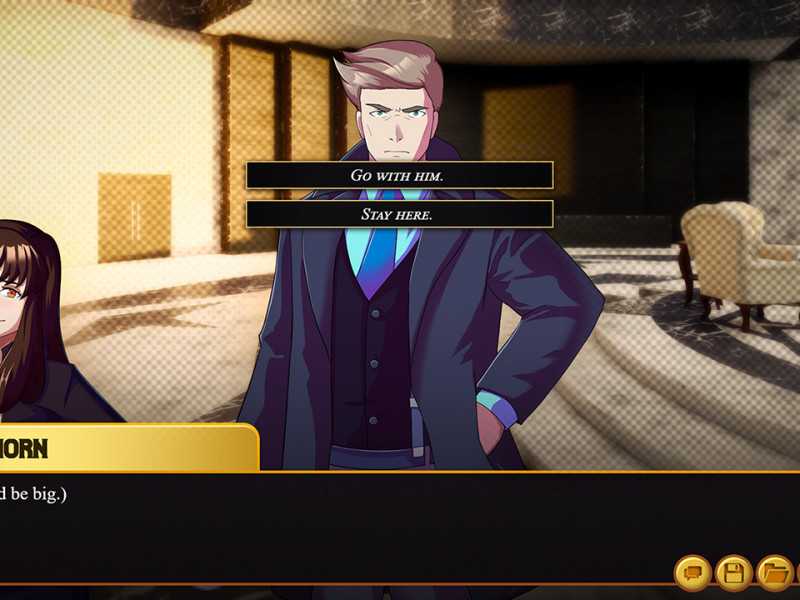 En ce qui concerne les romans visuels dans les jeux vidéo, il y en a un petit nombre que vous pourriez mentionner et qui ont sûrement laissé leur marque sur vous d'une manière ou d'une autre. C'est un genre qui peut être très agréable et surtout captiver, à condition que l'intrigue soit bonne. Sol Dorado Heist est un jeu indépendant qui tente d'entrer dans ce genre, en prenant comme principaux piliers l'amnésie et un voleur fugitif et dans le viseur de tous. Le jeu commence avec le dernier souvenir de notre protagoniste, Alex Thorn, qui se souvient vaguement d'avoir été dans ce qui semble être le mauvais endroit au mauvais moment. À son réveil, elle rencontre l'inspecteur Carrigan, qui lui pose des questions sur ses actes et sur son arrivée à l'hôtel où elle séjourne. Le casino Sol Dorado a été cambriolé, et The Silent Ace, un mystérieux criminel, est accusé d'en être le responsable. Cependant, Alex ne se souvient plus de son nom ni de la façon dont elle est arrivée là. Alors, lorsqu'il est établi qu'elle n'est pas suspecte, le détective décide de la « la laisser partir ». Cependant, Alex n'est pas satisfaite et souhaite maintenant tenter de démasquer le voleur et, ce faisant, peut-être retrouver la mémoire. L'histoire du jeu est bonne et elle utilise des éléments familiers, comme l'amnésie, pour donner vie à l'action. Ce qui est mauvais, c'est que vous n'arrivez jamais à vous entendre avec les personnages et que l'intrigue ne parvient pas à vous captiver suffisamment pour y jouer en une seule fois. Mais que faire dans Sol Dorado Heist ? Découvrir la véritable identité du voleur. La chose la plus importante dans le gameplay est l'histoire, car si elle ne vous captive pas au début, vous fermerez probablement le jeu et ne reviendrez jamais. D'une certaine manière, c'est le problème avec Golden Sun Heist , son intrigue n'est pas si forte.