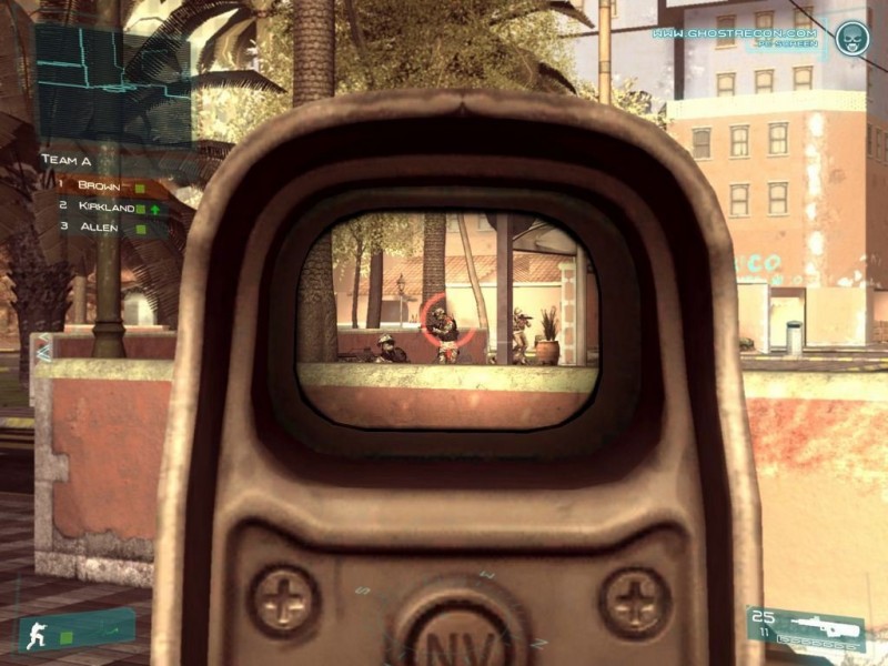 Pour le reste il faudra compter sur votre habileté lors des missions, ou presque. Le jeu est en vue à la troisième personne, vous dirigez le chef de l'escouade qui a la possibilité de donner des ordres à ses coéquipiers : avancer, se mettre à couvert, ouvrir le feu etc. d'une simple pression sur la croix directionnelle. D'autre part, nous sommes en 2013 et les technologies ont évolué : certains auront pu remarquer dans les différents trailers et images du jeu une surbrillance des ennemis (en rouge) et des coéquipiers (en bleu) grâce à un équipement de pointe. Toujours en place dans la version présentée, cette "aide" peut choquer au premier abord, facilitant le jeu, la précision des tirs et la recherche d'indices. Mais d'une part, il est possible d'enlever tous ces indicateurs et d'autre part le jeu garde une difficulté consistante, il est donc conseillé de les laisser. Ghost Recon 3 est avant tout un TPS tactique, et la moindre erreur peut être fatale, en témoigne le nombre de game over pendant la présentation. Il suffit de quelques balles à peine pour vous tuer en mode normal, et en mode difficile une seule balle vous met à terre. Plutôt stressant, surtout quand on sait que des snipers hantent parfois les immeubles de la ville. Une mission se fera donc souvent à tâtons, en progressant tant bien que mal de défaite en défaite, et en cherchant les différentes façons d'aborder un danger pour en sélectionner la meilleure.