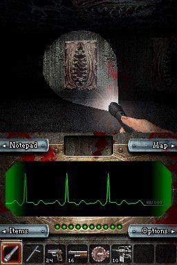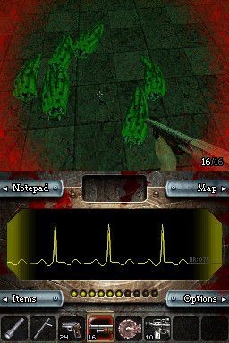 Sorti fin 2007 aux Etats-Unis, Dementium : The Ward aura eut du mal à trouver le chemin jusqu'à l'Europe. Et si cela ne suffisait pas, la version française du jeu arrive plus de deux mois après ses homologues européens, suite à un différent avec un distributeur. Développé par Renegade Kid, ce jeu est un FPS 3D, un genre que l'on n'avait pas connu à pareil fête depuis Metroid Prime Hunters en 2006 (eh oui déjà). Après une courte cinématique en temps réel, nous prenons donc le contrôle d'un personnage enfermé dans un hôpital psychiatrique pour le moins glauque, ce qui met tout de suite dans l'ambiance. En outre, des cris étranges semblent s'échapper des murs, un sentiment renforcé quelques secondes plus tard lorsqu'une infirmière est brutalement tiré au sol pour une créature inconnue. Autant dire que Dementium ne s'embarasse pas de détails et les questions ne manqueront pas en début de partie. Le nom du héros ? Inconnu. Que fait-il là ? Mystère. Comment des monstres ont-il pu émerger dans l'asile ? Hum. Nonobstant, au cours des 16 chapitres du jeu, on trouvera sur sa route de nombreux documents résolvant les zones d'ombres du puzzle. En ce sens, Dementium évoque quelque peu Silent Hill sur PSone, avec une pléthore de créature hideuses sur votre route, un personnage qui semble totalement perdu, un brouillard à couper au couteau et qui empêche de voir à plus de trois mètres, une lampe torche pour éclairer la route, et surtout une ambiance sans faille. D'aucuns pourront trouver la progression un peu linéaire mais le titre est unique en son genre et pour le moins violent pour un jeu du support (18+)