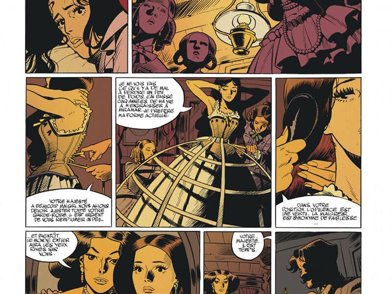 ![]() Plate-forme : Bande Dessinée Date de sortie : 12 Juin 2020 Editeur : Développeur : Genre : Bande dessinée Multijoueur : Non Jouable via Internet : Non Test par Nic0078/10 Scénario : Fabien Nury Charlotte impératrice raconte l'histoire de la vie (adulte) de Charlotte de Belgique, fille du premier roi de Belgique, Léopold Ier. En France, elle est probablement une figure historique inconnue pour beaucoup de gens, mais cet album montre que c'est injustifié. L'histoire commence avec la mort de sa mère, puis la rencontre de Charlotte avec l'archiduc Maximilien d'Autriche, le frère de l'empereur François Joseph. Nous sommes au milieu du XIXe siècle et les royaumes et les empires règnent en Europe. Chaque mariage revêt une grande importance politique, mais Léopold donne néanmoins à sa fille la liberté de choisir entre un prince portugais (Pierre V) et l'archiduc. Elle craqua pour ce dernier et le suivit après leur mariage en 1857 en Italie où il devint vice-roi de Lombardie-Venise. Mais il n'a pas tardé à être congédié par son frère, qui n'était pas satisfait de sa performance. Il se retira à Trieste avec Charlotte, où il souffrit d'une vie amère et retirée. Jusqu'à ce qu'il soit approché par des Mexicains qui voulaient un roi. Encouragé par l'empereur Napoléon III et contraint par son frère qui le déshérita, Maximilien fait la traversée. Là-bas un autre monde les attend. Maximilien devenu le nouvel empereur du Mexique, se mettra à dos l'ensemble de l'armée et de l'église, suite à sa façon de gouverner discutable. Charlotte de son côté découvrira l’horreur de ce pays écartelé entre la misère et la guérilla. C'est en faisant face a? toutes ces difficultés que Charlotte aura l'occasion d’exprimer sa confiance en elle, son leadership et sa capacité à gouverner. VERDICT-Charlotte impératrice est un ouvrage fascinant. Nury et Bonhomme érigent un monument pour une Altesse impériale inconnue, un monument du plus haut niveau ! Une BD qui a déjà tout d'un classique. On retrouve dans ce volume toutes les qualités du précédent, avec une histoire qui prend de l'ampleur. Nury est décidément un excellent scénariste, sachant adapter et romancer l'Histoire juste ce qu'il faut pour en faire un récit prenant, comme c'était déjà le cas dans "La mort de Staline". Et le trait de Bonhomme est décidément toujours aussi beau. |