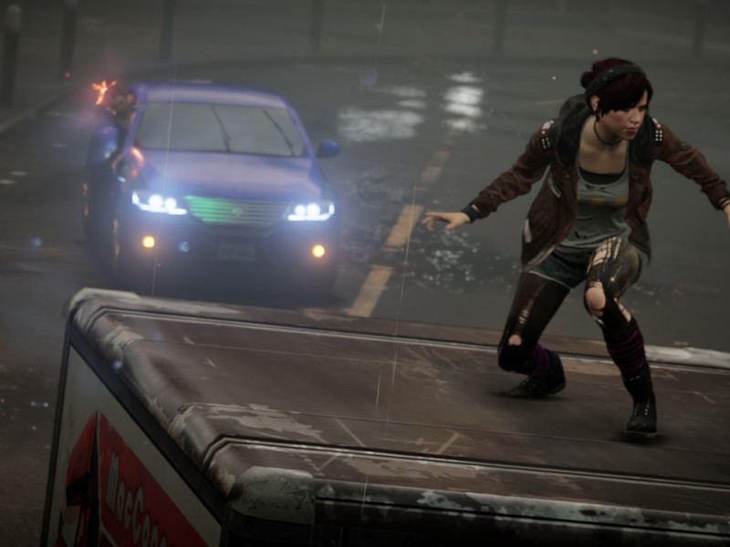 De plus, Fetch dispose de la possibilité de faire changer de camp les ennemis et les tourelles, ainsi que d'une attaque spéciale qui permet de faire le ménage en un instant. Pour remporter des points de compétences, il faudra collecter des flux lumineux en réussissant les missions annexes ou en complétant des défis parfois un brin répétitif. En revanche, on ne retrouve plus de système de karma cette fois-ci, et les pouvoirs de Fetch n'évolueront donc que dans une unique direction. Un choix finalement assez logique compte tenu du scénario d'inFamous Second Son.