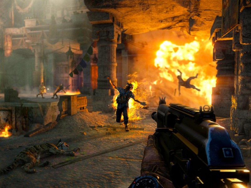 ![]() Plate-forme : PlayStation 4 - Xbox 360 - PC - PlayStation 3 - Xbox One Date de sortie : 20 Novembre 2014 Editeur : Développeur : Genre : FPS Multijoueur : Oui Jouable via Internet : Oui Test par Nic0078/10 Far Cry change totalement d'ambiance dans ce périple au coeur de l'Himalaya. Il était une fois.Développé par Ubisoft Montréal, Far Cry 4 vous met dans la peau d'Ajay Ghale, un américain né au Kyrat, mais qui a vécu toute sa vie aux Etats-Unis. Il est de retour dans sa terre natale pour y répandre les cendres de sa mère, mais le voyage tourne au cauchemar. En effet, Kyrat est gouverné par un dictateur sanguinaire, Pagan Min, et le pays est en pleine guerre civile. La résistance qui souhaite destituer le tyran en place a donc besoin de votre aide. Votre premier objectif sera pourtant de rester en vie, dans un environnement plus hostile qu'il n'y paraît. La progression est bien entendu ponctuée de nombreuses cinématiques (entièrement doublées en français), où l'on découvre des protagonistes loin d'être sans zones d'ombre. Ajay Ghale en tête, n'est pas vraiment un soldat, et essaye de décrire le mieux possible ce que ressentir un individu lambda s'il était face à une situation analogue. Kyrat étant un environnement assez vaste, libre à vous de choisir votre manière de jouer, soit de jouer avec le furtivité, soit y aller comme un rustre et foncer sur les ennemis. Quelques défis sont également proposés par les habitants, et il est possible de se déplacer sur les pistes en voitures, un peu n'importe où avec le VTT, dans les airs avec l'hélicoptère et bien sur sur l'eau avec des embarcations. Les armes ne manquent pas dans Far Cry 4, et contrairement au deuxième épisode, elles ne s'enrayent jamais. On pourra d'ailleurs les modifier afin de les rendre plus performante ou discrète. A chaque point contrôlé sur l'île, on retrouve en effet une boutique pour dépenser ses précieux deniers. Outre les soldats ennemis, Kyrat comporte en effet une biodiversité particulièrement menaçante (tigre, éléphant, rhinocéros, loup, aigle, etc) et les animaux ont tendance à vous attaquer à la moindre occasion. Il est néanmoins possible de dévier leur attention en lançant des appâts dans une direction opposée à la votre. Far Cry oblige, le "surnaturel" entre également en jeu, cette fois sous la forme des branches de l'arbre de compétences, évoluant vers l'éléphant et le tigre. A l'instar d'un Assassin's Creed, vous pourrez également dépouiller les ennemis et les animaux pour fabriquer des objets additionnels. Ajay pourra ainsi s'intéresser aux plantes, dont les vertus médicinales ne sont plus à prouver. Une réalisation à la hauteur ?Bien que tournant sur une évolution du moteur graphique que Far Cry 3 (lui même issu du deuxième opus), ce nouvel épisode offre pourtant une réalisation technique de toute beauté. La profondeur de champ est élégamment rendue, les cycles jours/nuit bien gérés, nonobstant, on n'échappe pas à quelques bogues lorsque la console est très sollicitée. Il n'en demeure pas moins que l'étendue de la zone de jeu, et sa relative vivacité force le respect. L'animation demeure assez fluide sur consoles, malgré quelques ralentissements notables, mais le plus grand pas en avant effectué dans cet opus réside dans l'intelligence artificielle. Les protagonistes réagissent en fonction de vos actions, et on ne vit jamais les mêmes évènements similaires de la même manière. Si quelques soucis d'interface se font sentir (en particulier pour gérer l'inventaire), la jouabilité de Far Cry 4 reste très arcade, et se maîtrise en quelques secondes. PS4 oblige, il est également possible de jouer sur PlayStation Vita via la fonctionnalité Remote Play Outre une campagne solo relativement longue et des activités secondaires très prenantes, Far Cry 4 intègre plusieurs modes multijoueurs. Du coopératif bien sur où deux joueurs via Internet peuvent effectuer des missions autonomes se déroulant sur des parties de Kyrat parcourus durant la campagne. Tant qu'un joueur est encore en vie, la mission se poursuit, et l'on dispose également de la possibilité de ranimer son comparse. On retrouve également du compétitif (à 5 contre 5) où une équipe contrôle des soldats, l'autre les guerriers ancestraux de Shangri-La. Un éditeur de cartes est aussi de la partie, et l'édition PlayStation comporte une fonctionnalité permettant d'inviter des joueurs ne disposant pas du jeu. Côté son enfin, la bande son proposée est de très grande qualité, avec des musiques bien choisies, un doublage français très travaillé et des bruitages immersifs. VERDICT-S'appuyant sur les solides bases de son prédécesseur, Far Cry 4 est un FPS particulièrement réussi. S'il met l'action en première ligne, le jeu d'Ubisoft Montréal réserve sa part d'émotion, dans une campagne solo riche et profonde. Bien réalisé et affichant un univers ouvert apportant une expérience unique, cette production comporte également un multijoueurs convaincant, que cela soit en coopératif ou bien en compétitif. |